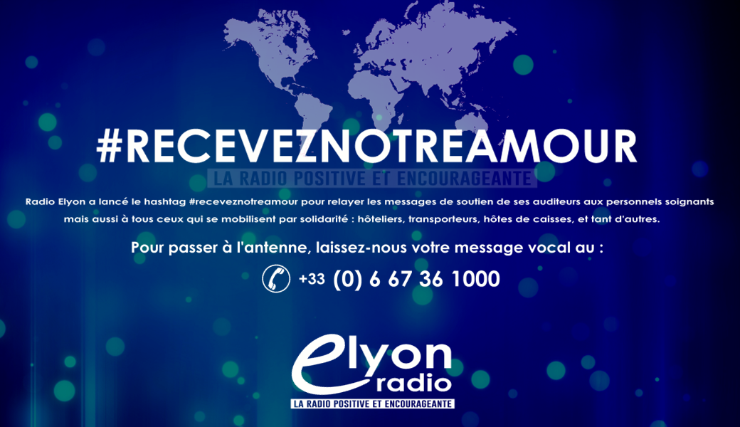 En cette période si particulière, Radio Elyon a lancé le hashtag #receveznotreamour pour relayer les messages de soutien de ses auditeurs aux personnels soignants mais aussi à tous ceux qui se mobilisent par solidarité : hôteliers, transporteurs, hôtes de caisses, et tant d'autres.